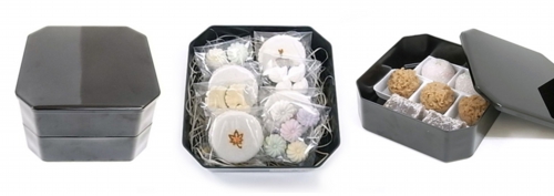 - この八角缶は、缶でありながら漆塗りのような光沢にこだわって作った缶です。