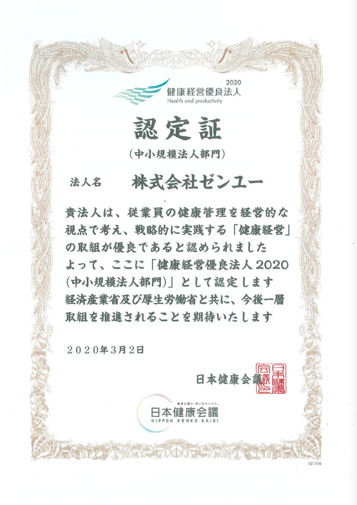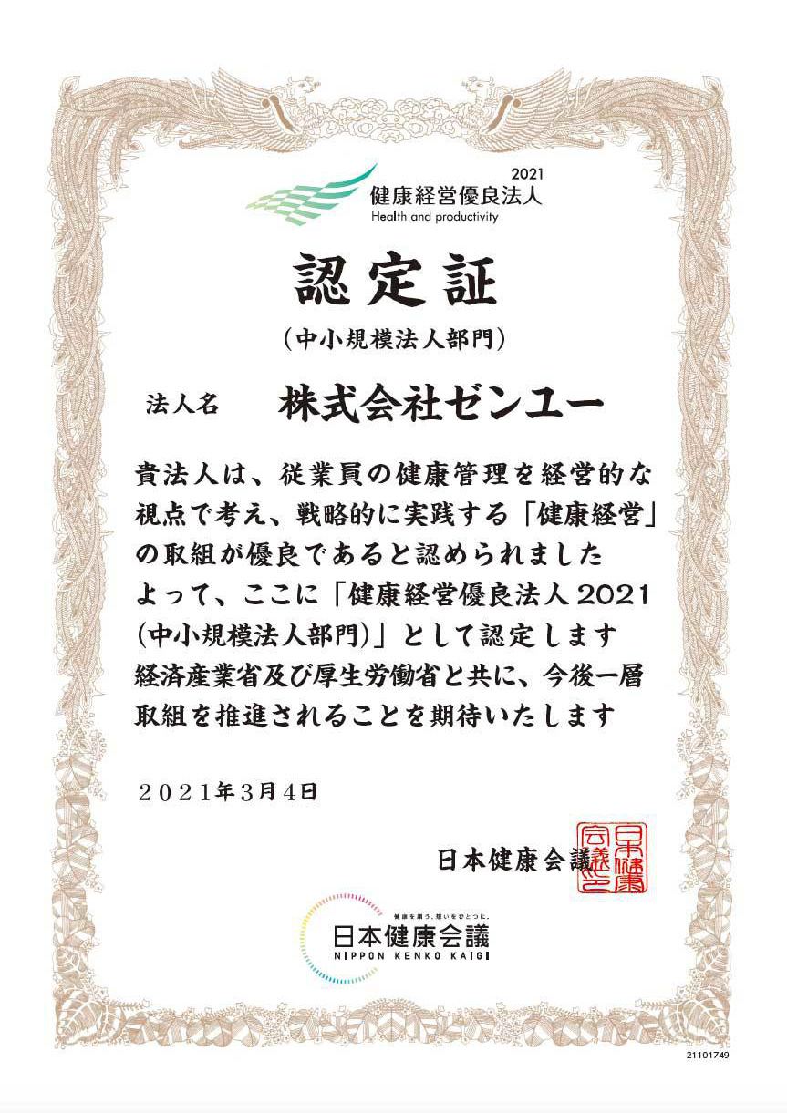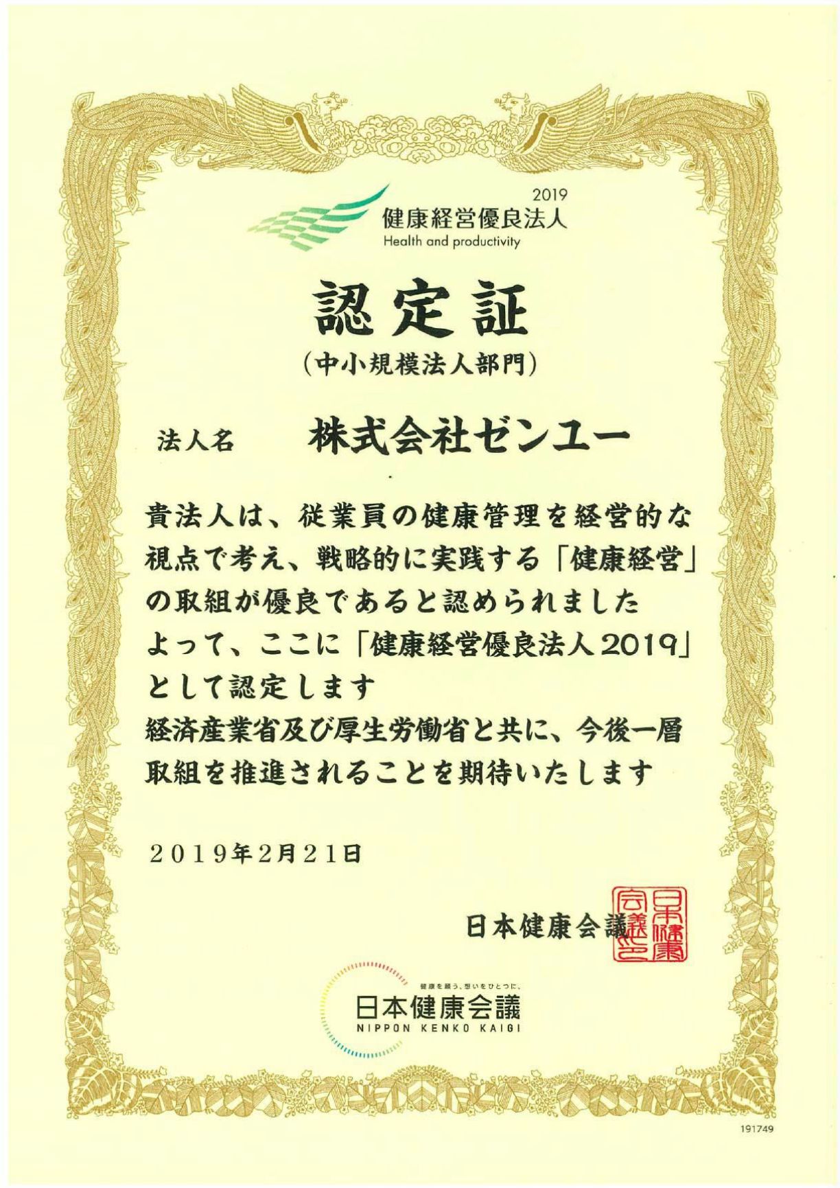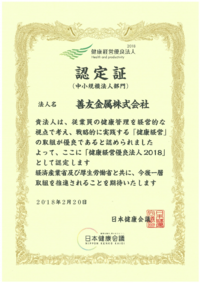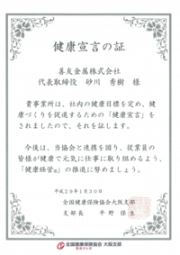 - 2017年1月「健康宣言の証」を協会けんぽ大阪支部様より頂きました。